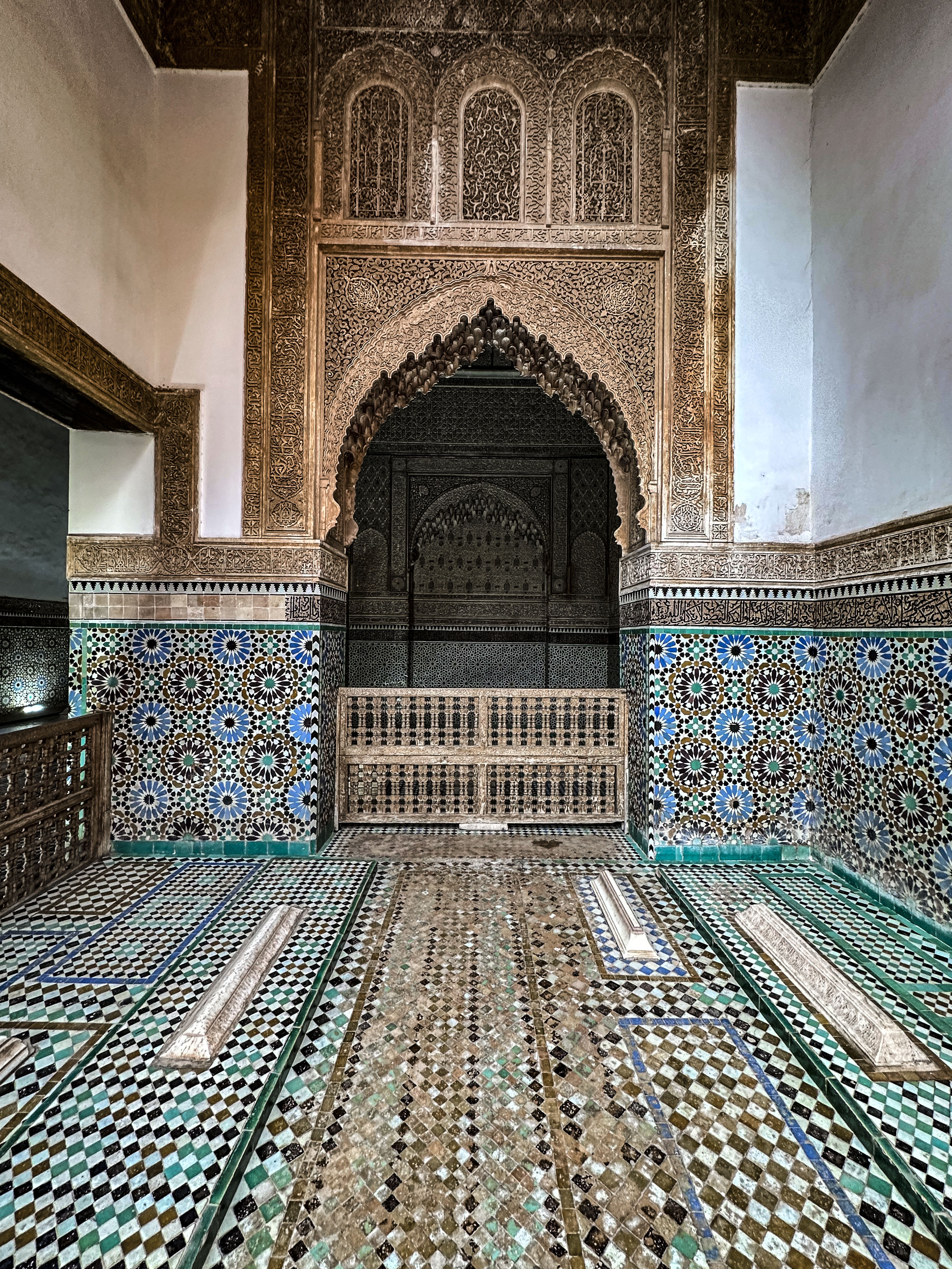 I palazzi storici della città (tra cui il magnifico Palais El Badii), influenzati dall’architettura di matrice islamica, presentano decorazioni colorate dettagliatissime composte con piccoli tasselli di marmo intagliati, cortili interni e fontane.