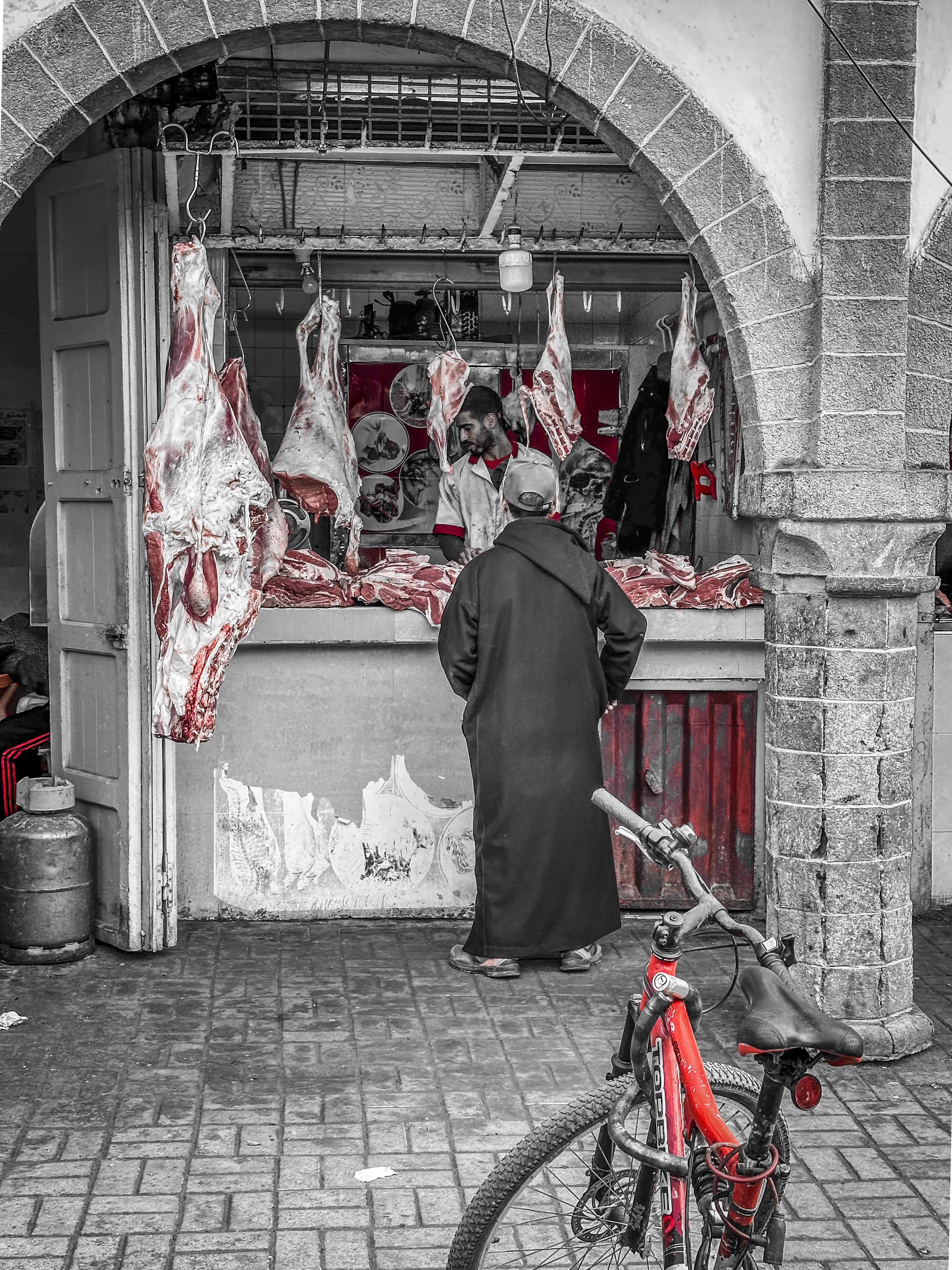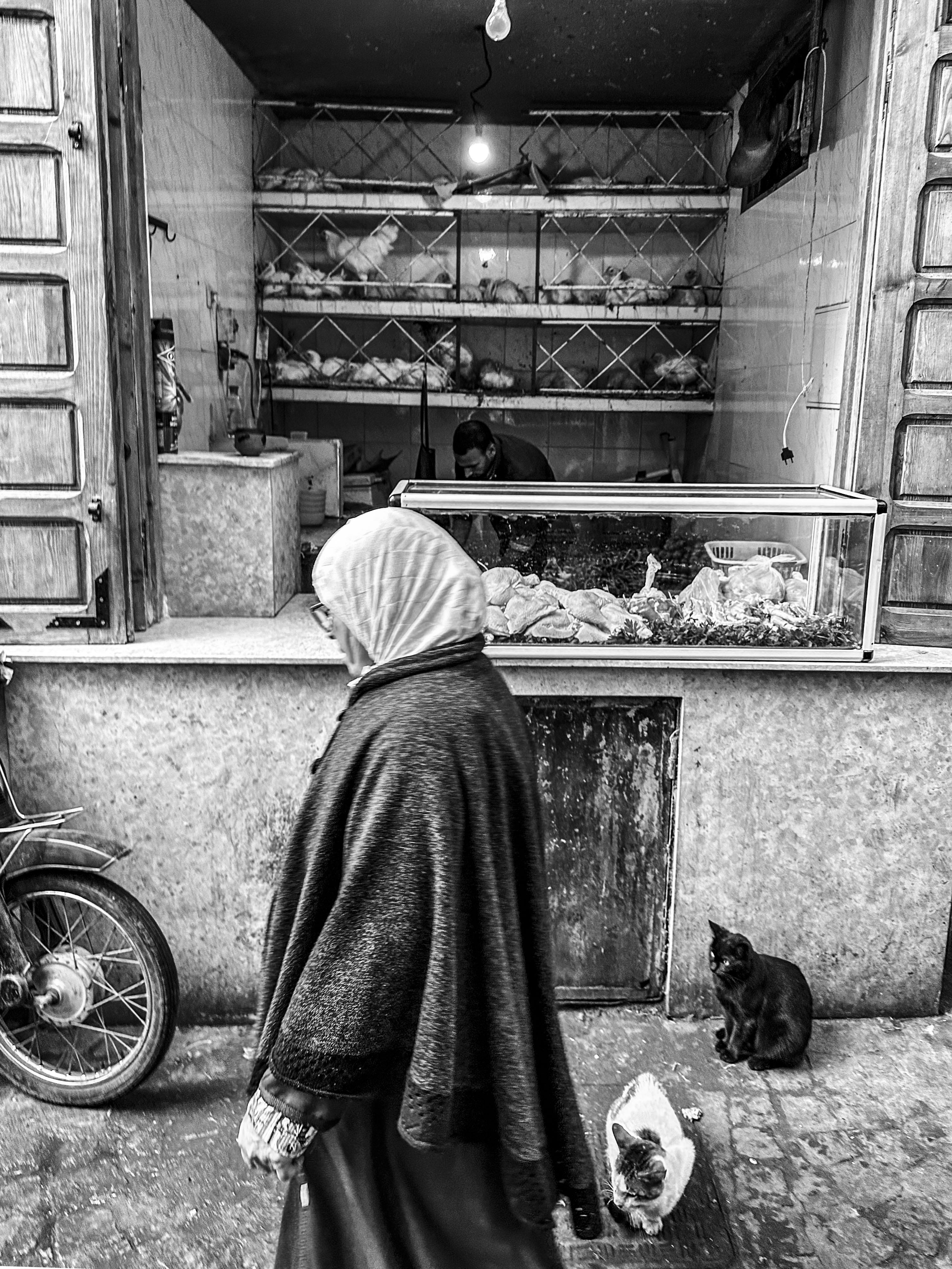 In questa moltitudine di botteghe, le macellerie sono i luoghi che hanno il maggiore impatto visivo (su vegetariani e non) essendo ancora soliti esporre la carne insieme agli animali vivi, ben visibili dall’esterno, chiusi in piccole gabbie.
