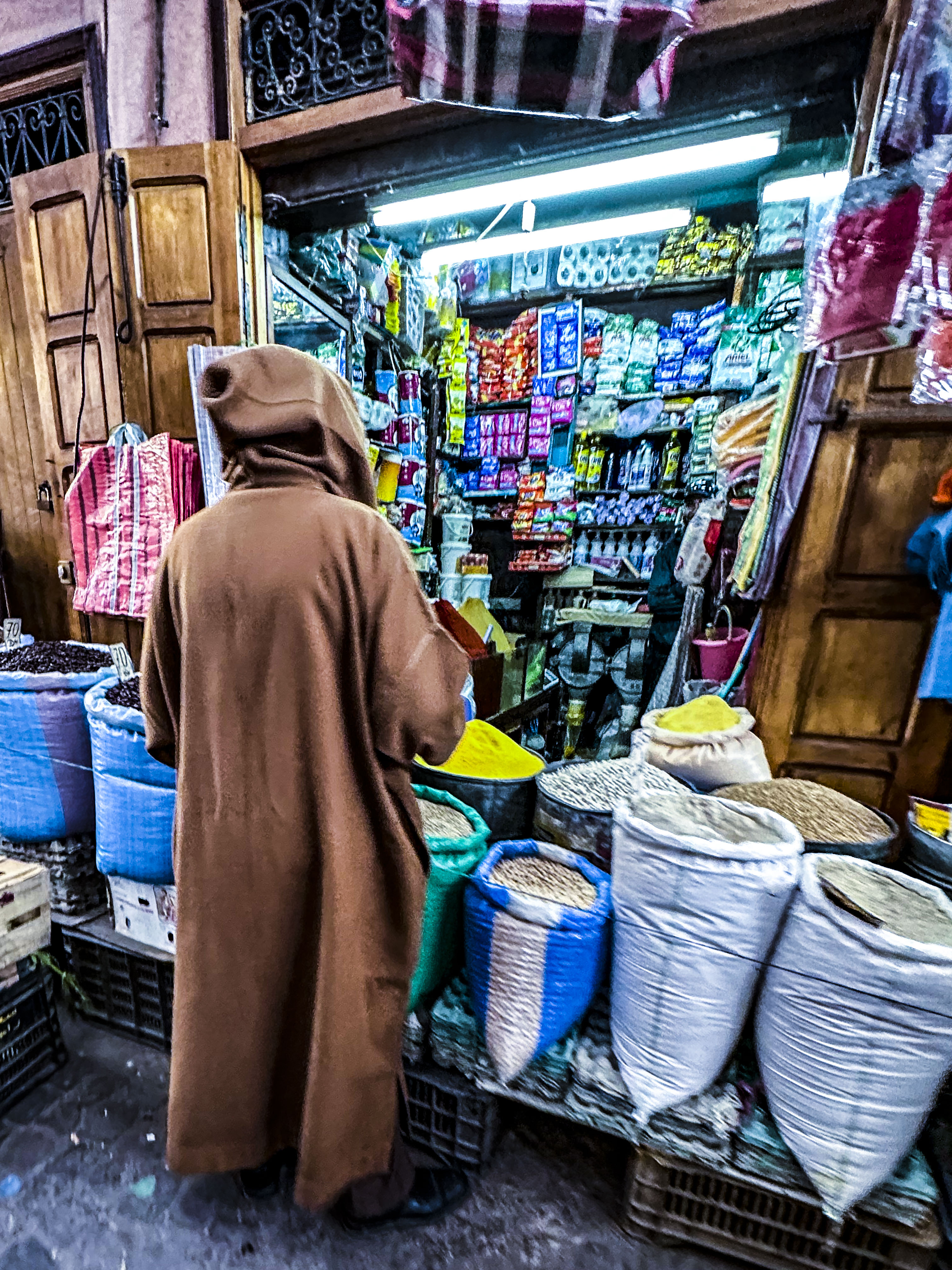 Ogni commerciante vende merci delle tipologie più disparate, esponendole ovunque, rendendo avvolgente e colorato ogni angolo.