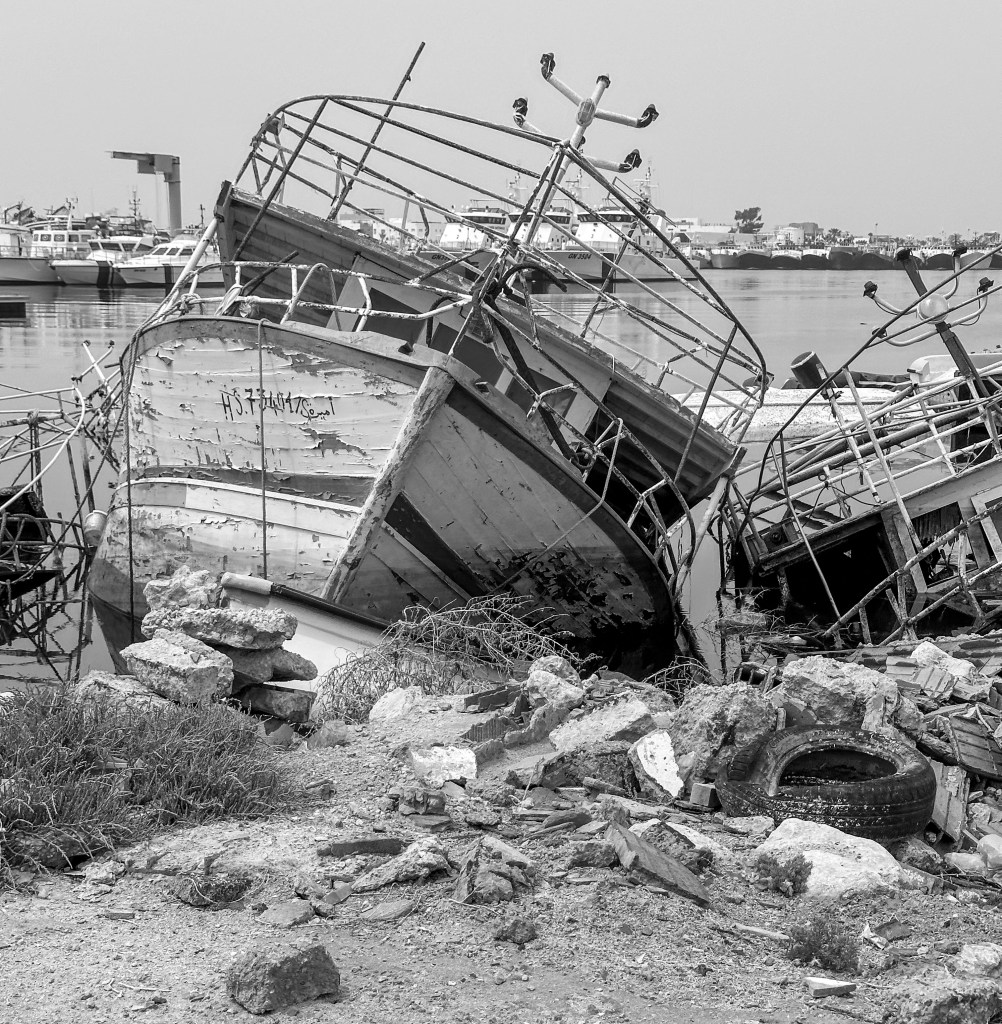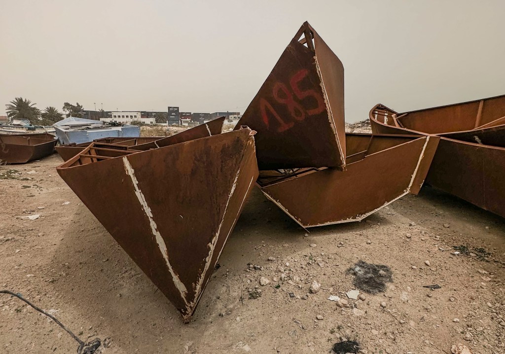 I depositi a perdita d’occhio di scafi abbandonati, blocchi fatiscenti di ferro e ruggine, collocati nelle zone di competenza della Guardia Costiera Tunisina, sono l’emblema delle speranze infrante di migliaia persone che invano cercano di costruire altrove una vita degna.